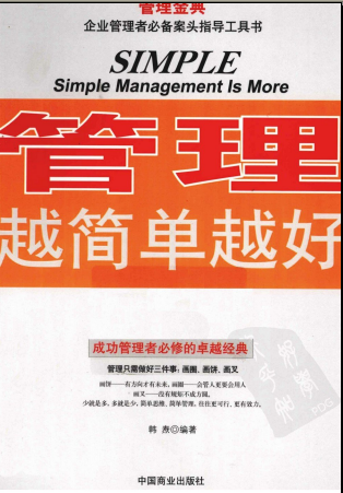 《管理越简单越好5》内容简介:简单化是解决管理问题的最佳方法。管理者要力求简单,做好“画饼、画圈、画叉”三方面:方向明确、人才运用得当、制度令行禁止,贯彻到位,将有限的资源效应运用到最好,相信定会终有所成。