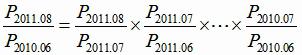 即把2010年7月至2011年8月各月的CPI环比价格指数连乘。