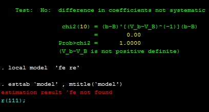 程方琦 发表于 2021-4-2 13:44 刚刚遇到这个问题,解决了!试试est的全称:estimates store fe 虽然不知道原理,但是我这样解决了