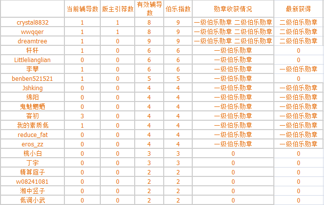 现予全坛公示,授予其伯乐勋章,并奖励二级伯乐勋章获得者9000论坛币+VIP账号2年;奖励一级伯乐勋章获得者4000论坛币+VIP账号1年,谨以感谢他们为论坛培养和引荐人才所做的贡献!恭喜他们!