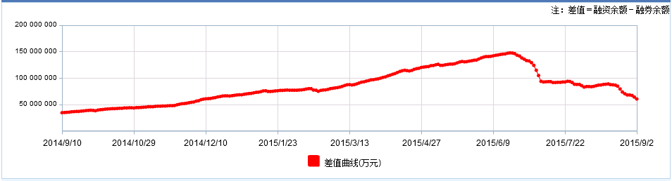 让我们记住一个数据:2014年6月30日,上交所的融资融券余额为2656亿元;2015年9月2日,该数据为6084.84亿元。两者相比,仍然有129%的差距。