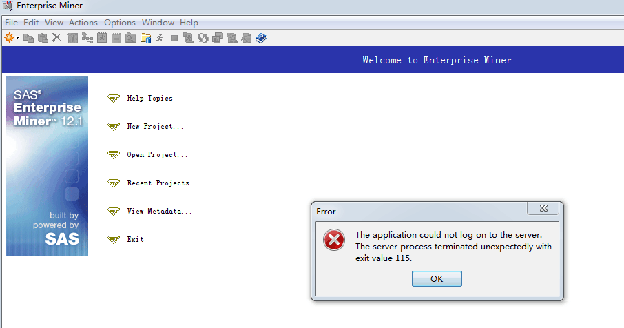 SAS EM 登录时显示 the application could not log on to the server.