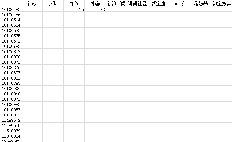 想观察在各ID下,关键词的词频。做出的结果类似这样的
