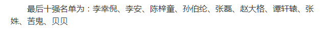 最终晋级10强名单: