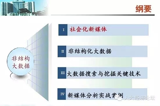 我今天的题目主要跟大家讲社会化新媒体与非结构化大数据分析。其实我们在座的企业和这个也很像,我们先看一看网络发生了什么样的变化,最早的天涯,包括现在的微博、QQ、微信。现在我们发展到新媒体的时代,但是我们传统行业目前的模式还是什么样的状态呢?大家可以看到这是我们经常看到的场景,以后还会经常看到。