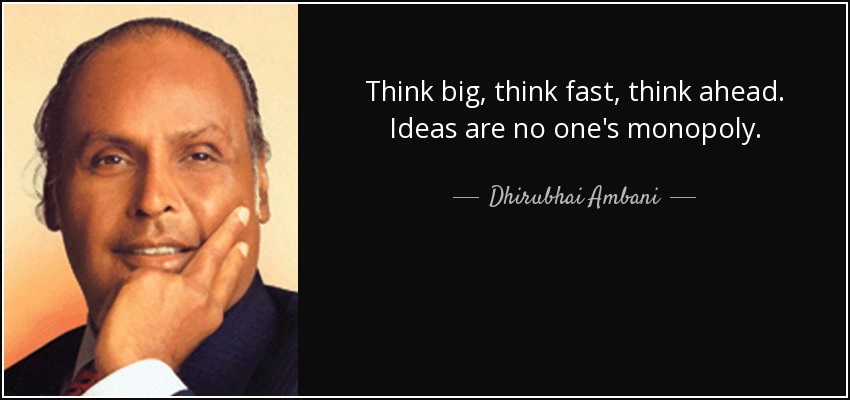 创意并不是任何人的专利! 。 – 迪鲁拜‧安巴尼(Dhirubhai Ambani)