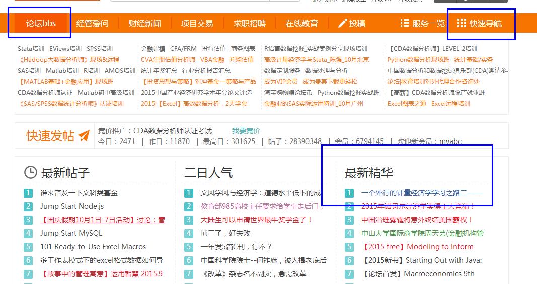 很简单啦!一般要用的是论坛bbs,快速导航,然后看看精华帖什么的。如果比较八卦(我是说关心一下其他的话题),可以看看二日人气!