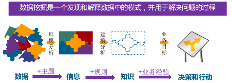 在课程最后将数据挖掘进行了界定,明确了数据挖掘是从历史经验中寻找规则,根据规则提供预测性决策的支持。