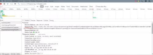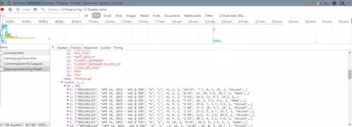 现在需要从已有的requests中筛选出正确的。列表中的playerdashptshotlog似乎是需要的那一个。选中它后在Preview tab中可以查看其结构。