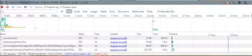 以Chrome和NBA stats的网页为例,审查元素-->Network tab,里面空空如也,F5刷新后,Network里会出现如下界面。