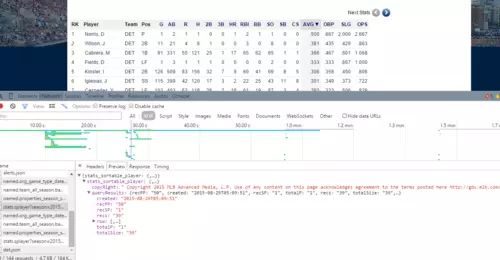 我继续在此基础尝试了另一个美国重要的职业体育联盟:MLB(职业棒球联盟)的网站数据抓取,同样可以采用这种寻找API的方法。