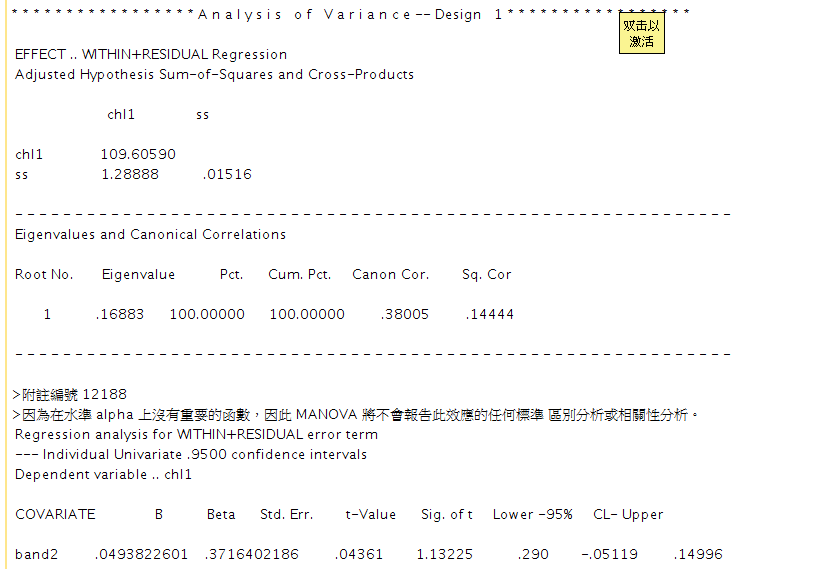 如图,问一下哪个是两个因变量chl1,ss相对于一个自变量band2的相关系数