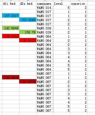 图表中颜色相同的是一组,我想做配对t检验,犹豫表格上没有配对在一起,请问用什么公式才能配对。谢谢!