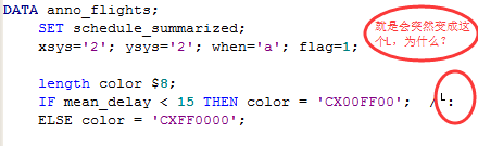 刚刚开始学SAS 为什么我只要左键选择了某一行,那行就会消失 然后变成一个“L”? 是怎么回事?
