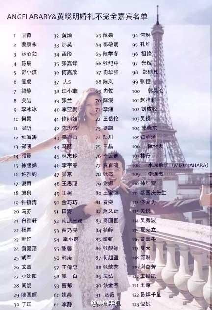 黄晓明、Angelababy婚礼出席明星堪称半个娱乐圈