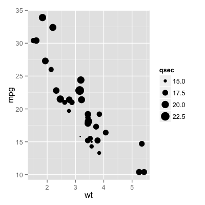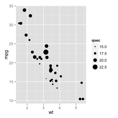 p + geom_point(aes(size = qsec)) + scale_area()