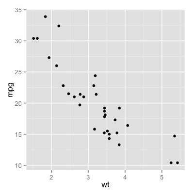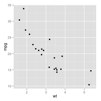 p <- ggplot(mtcars, aes(mpg, wt))