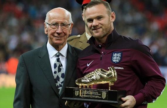鲁尼从博比-查尔顿爵士手上接过英格兰历史头号射手金靴