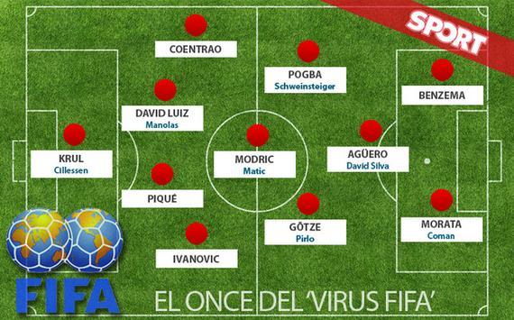 刚刚过去的这一周,堪称足球历史上FIFA病毒最猖獗的时段之一,包括阿圭罗、本泽马、大卫-席尔瓦等大牌球星在内,均在代表国家队出战时受伤。《每日体育报》推出了一个受FIFA病毒侵扰的强大阵容。
