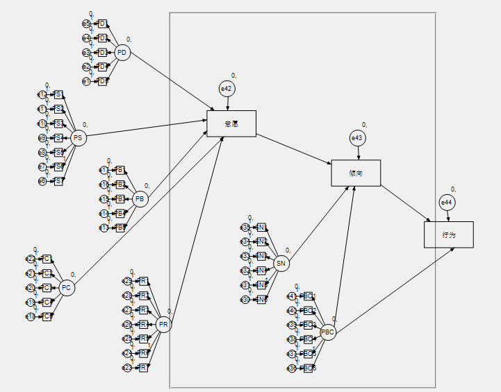 icolee 发表于 2015-10-18 09:53 楼主 还是先把模型的画图学学画好吧....amos的中间那个方框就是一个限制....你的模型虽然可以跑出来....但 ...