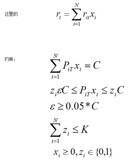 还有一篇。遗传算法在指数复制中的应用_陈于思,是CAJ格式的没有传上来,但是模型的形式都是一样的,这个模型很多指数跟踪的文章里都有用,但是不知道具体是怎么用matlab求解的,希望有前辈能够指点一二,这个约束条件好复杂,还含有虚拟变量,小辈无从下手