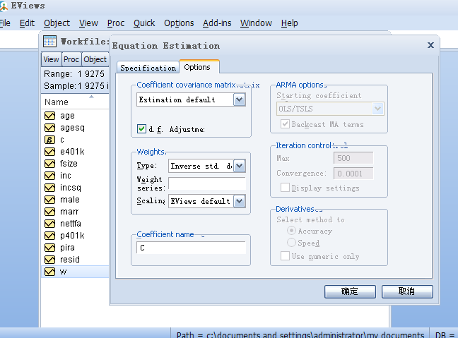 各位高手,最近在学习伍德里奇的《计量经济学》,在做到加权最小二乘估计时昏头了,对于weights的type到底选哪样?下面的type series又该填什么?看了网上的说法,做出来的结果与教材上有出入,望各位大神赐教!!