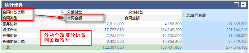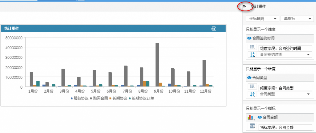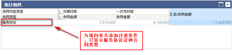 为合同金额添加过滤条件,只显示合同类型为服务协议的合同金额