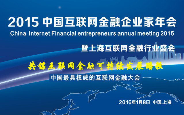 2015 中国互联网金融企业家年会暨上海互联网金融行业盛会将于2016年1月8日在上海市举行,本次大会得到中国互联网金融协会、上海市互联网金融行业协会、中国互联网金融创新研究中心、上海金融办等大力支持,由上海捷昶传媒集团承办。