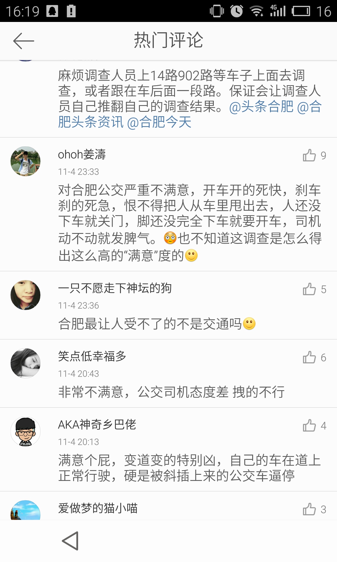 微博一篇关于合肥人民对合肥公交满意度调查,调查显示八成合肥人民满意。可是微博评论却是另一番模样。想知道是不是调查方法哪里不对