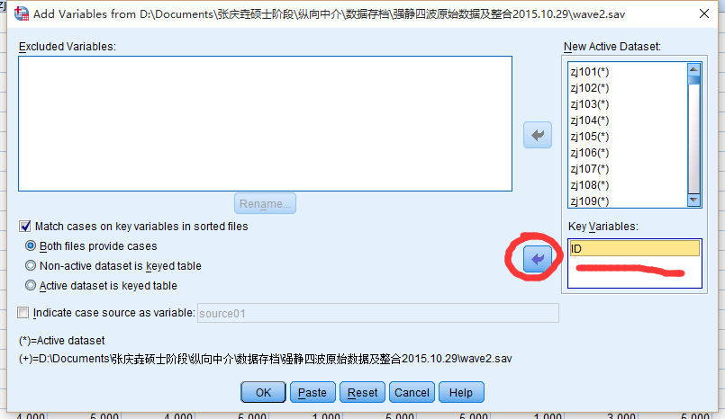 step5:注意两个数据文件中的数据必须都按照ID从小到大排序,否则数据合并会失败