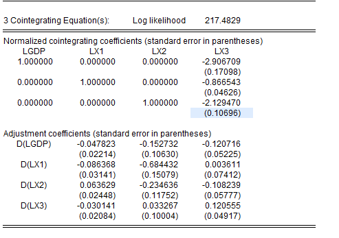 jzs0567 发表于 2015-11-6 10:19 有2个协整方程,根据at most1*与at most2 的伴随概率来判断,一个拒绝,一个接受,因此具有2个协整方程,到 ...
