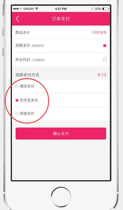 4.来到结算页面,提交订单,每日夺宝目前有3种支付方式,以后会陆续增加的。