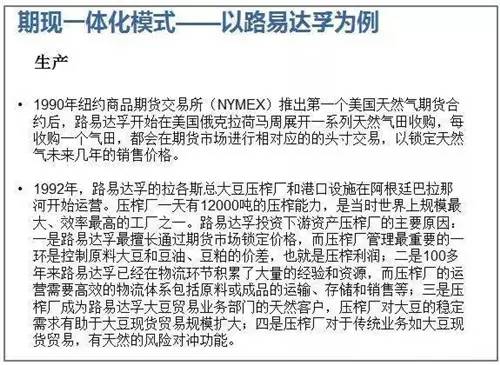 1.在现货端,通过收购、兼并、重组等模式,将生产、仓储、港口、物流等实体供应链掌握在手中,降低供应链运营成本的同时,掌握市场需求的第一手资料;
