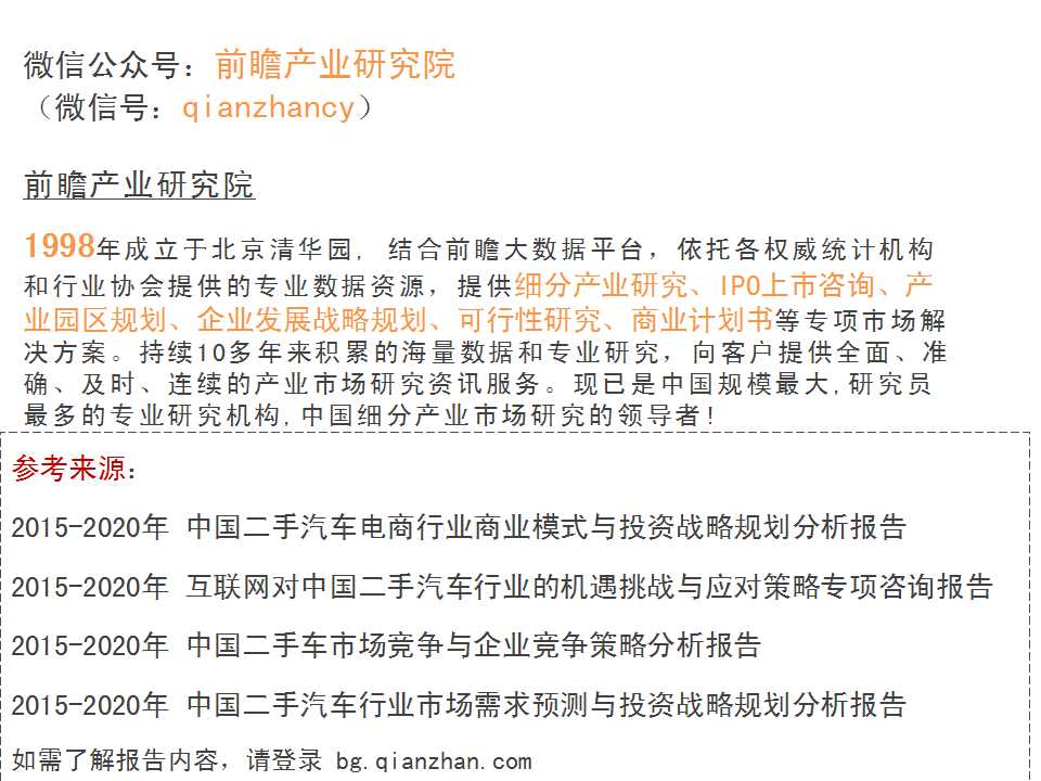 2015-2020年中国二手车O2O市场前瞻与投资战略规划分析报告