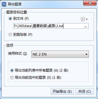 4.导出题录:选择样式NE 2 EN,导出到txt文件。