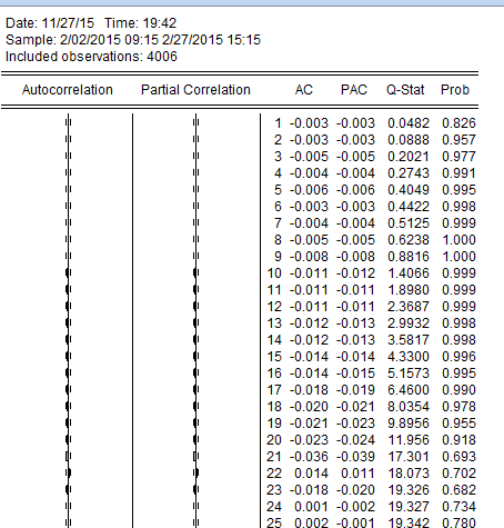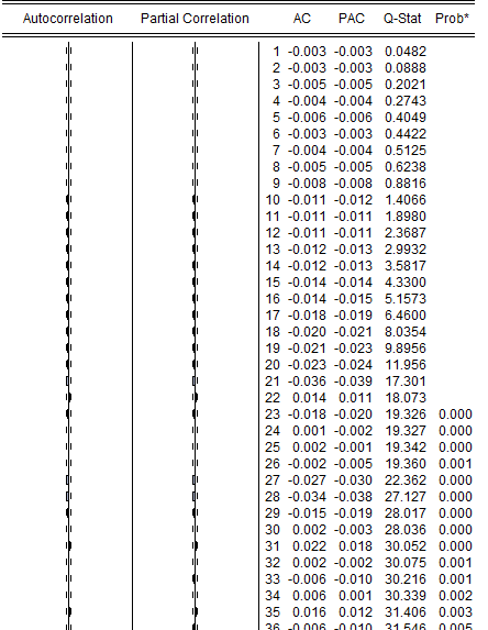检验ARMA模型时,要对残差进行白噪声检验。我通过1,proc-make residual series,产生残差序列以后,然后看残差的correlgram,得到P值大于0.05(即没有白噪声)(见图二),然后用另外一种方式:resudual diagnostics correlogram Q-statistics,又得到P值小于0.05(即不是白噪声)(见图一)。这是为什么啊?是某种方式不是这么用的吗??