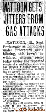 马顿的疯狂放气人是那些隐藏在一系列气体袭击案背后的人。这些案件发生在上世纪三十年代初的美国维吉尼亚州的伯特图尔特县,以及上世纪四十年代中期的美国伊利诺伊州的马顿。据报道,第一起气体袭击案发生在伯特图尔特县的黑美克镇的卡勒·霍夫曼的家中。当夜,该镇就有三起这样的案子被曝光。霍夫曼太太说:“在1933年12月22日晚上10点钟左右,她闻到一股异常的味道,然后就感到一阵恶心,这种味道和恶心大约在10点半又卷土重来。此时,霍夫曼先生与警方取得了联系。第三次袭击发生在大约凌晨一点,这次影响到了整个房子,霍夫曼家的8名成员受到了气体的侵袭,还殃及了在他家留宿的客人阿什比·汉德森。