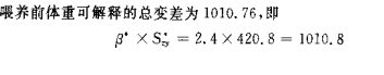主要以协变量为自变量建立关于猪体重的增量的回归直线,从体重增量的总变差中扣除回归平方和的剩余平方和就为喂养前体重不能解释的变差,这个值就是剔除协变量影响后的观测变量的总变差。