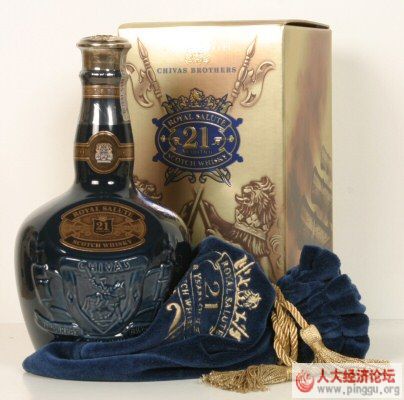 服务员端上一瓶蓝色的皇家礼炮(ROYAL SALUTE 21)和可乐、冰块,水果拼盘和小点心之类的,再在每人面前摆了一个广口杯,服务员在玻璃提壶里加可乐兑完酒,正要依次斟酒时,陈总对那小姐说,先这位,——指指黄行长。