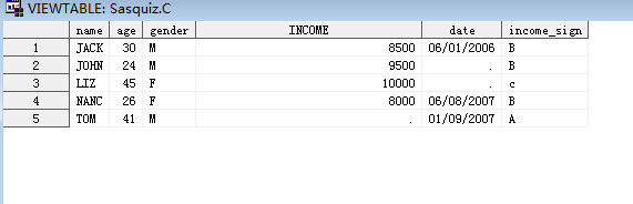 lfm_ecnu 发表于 2015-12-10 23:51 data d; set sasquiz.c; if income_sign='A' then delete;