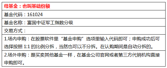 以“富国中证军工指数分级基金”这只基金为例,先为大家普及一些基础知识。因为据我了解,能把这些基础知识搞明白的都很少啊,也有可能是我孤陋寡闻。