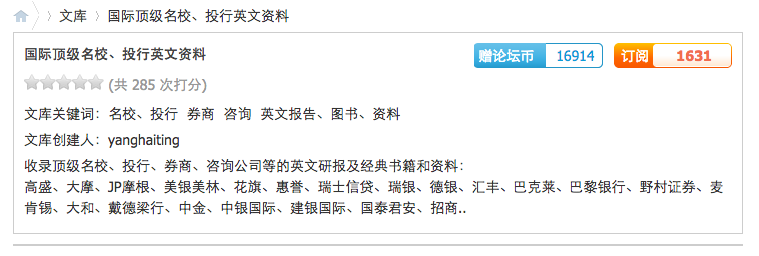 【月订阅增长数多】国际顶级名校、投行英文资料(yanghaiting)