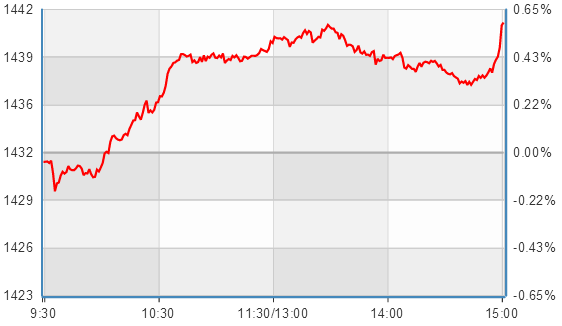 三板做市指数今日以1432.91点开盘,自开盘之后指数大幅上涨后呈小幅下降,截至下午收盘:最高达到1441.37点,最终收于1441.37点,涨跌幅为0.59%。