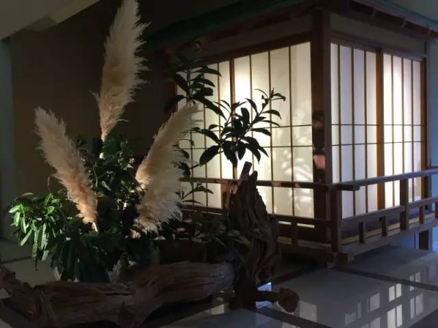 比如插花,宫下社长介绍,整个钟山苑放了400多只鲜花盆栽,专门维护这些鲜花盆栽的员工就有7个,我不懂花,但能感觉到每只花都是一个独特的生命体,在极简的日式设计风格中,这些鲜花在每个小空间内占据中心的位置,花神,干脆这么形容吧。