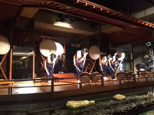 还有每晚8点半,员工自制的演出《灵峰太鼓》,开场前10分钟,已经坐得满满当当,都是白发苍苍,七八十岁的老人在看戏。节目不复杂,分三幕,五个人在台上主要就一个动作,敲鼓,或许是鼓点的冲击力让老年人更振奋吧,第三幕,演员会端着大鼓到观众席,请观众一起敲。中国的银发经济、老年经济怎么搞?现场看了就有感觉。演出开始前,每个人都拿到一张bingo抽奖券,演出结束后抽奖,看着老人看着奖券交头接耳的专注劲儿,不得不佩服商界对自己客群的洞察。一场大戏结束,老人们兵分两路,一路泡温泉,一路涌入酒店一端的当地特色商品店,200平米的迷你百货中心里挤满了提篮者,那可真叫个购买力。