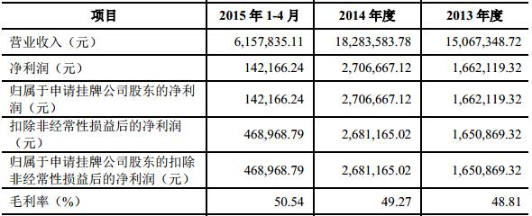 该公司在2015年1-4月、2014年、2013年的毛利率分别是50.54%、49.27%、48.81%。50%的毛利率,意味着母爱婴童公司投入产出比较高。