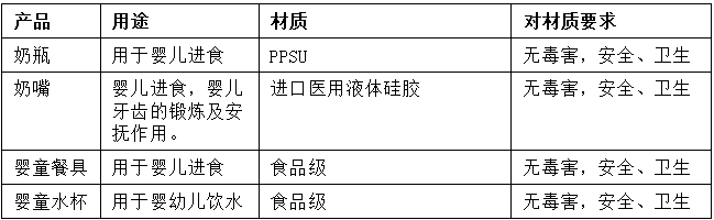 表1 某优质婴幼儿产品材质及要求