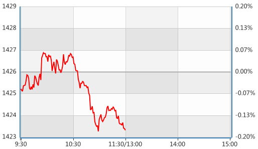 三板做市指数今日以1426.31点开盘,自开盘之后指数下降明显,截至上午收盘:最高达到1427.21点,最终收于1423.76点,涨跌幅为-0.18% 。