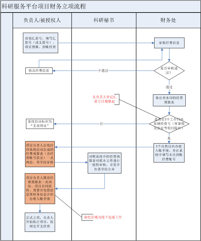 2.财务处在5个工作日(寒暑假及法定节假日除外)内对经费到账情况进行审核,并分配经费账号;