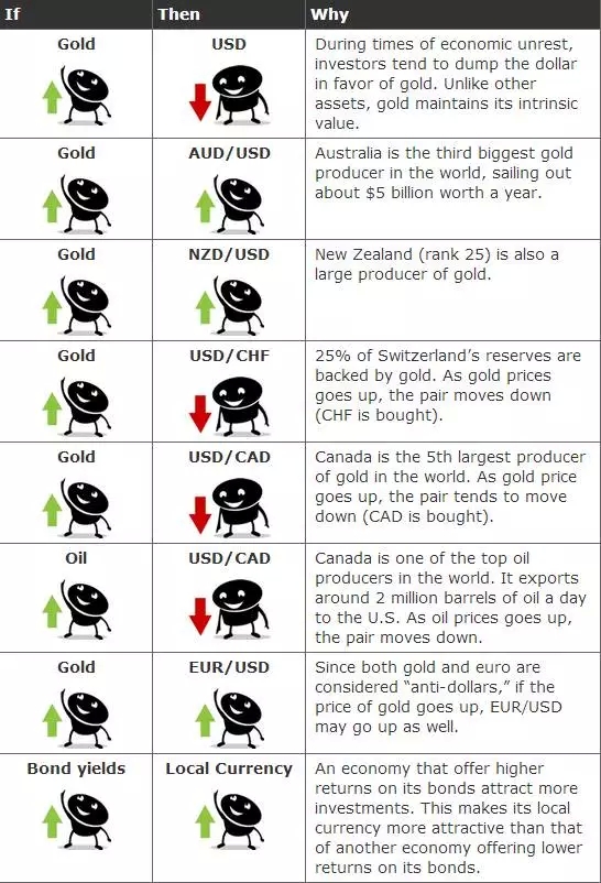 这一部分有许多市场之间的关联信息需要记忆,下面我们就来快速回顾一下吧。货币的价格行为受到它们与商品、债券和股指之间关系的影响。
